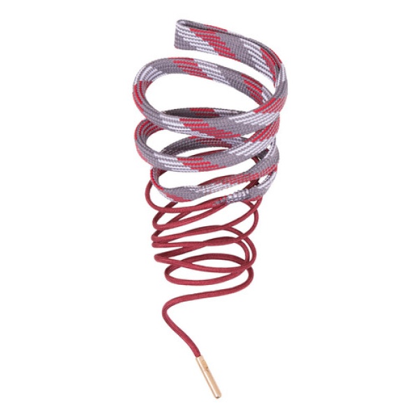 Simplemente agregue el solvente de su elección a la cuerda de limpieza y limpie desde la abertura hasta la boca del cañón de una sola vez, repitiendo según sea necesario hasta que esté limpio. El extremo pequeño de la cuerda tiene una guía de latón pesado para facilitar la introducción de la cuerda a través de su arma.