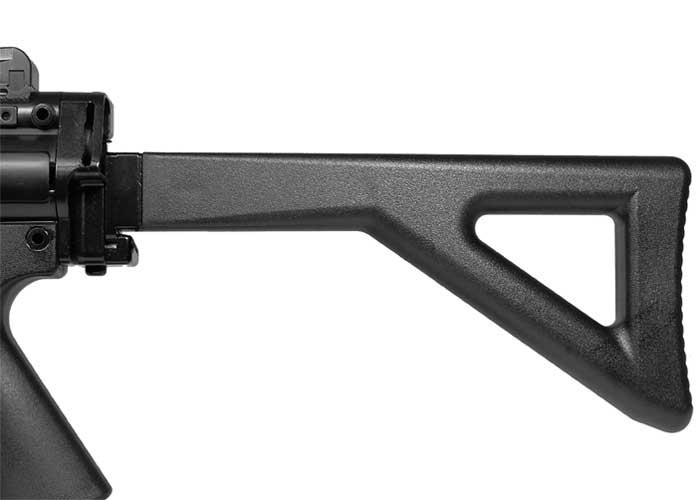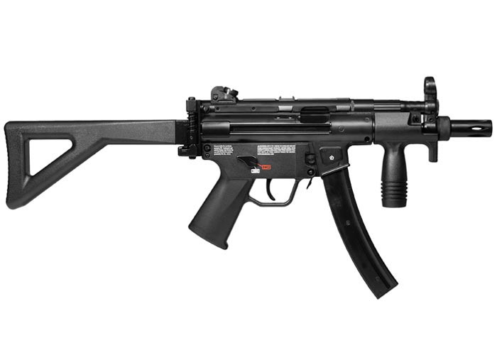 El arma de fuego H&K MP5K-PDW (arma de defensa personal) es un arma compacta diseñada para ser utilizada por miembros de la tripulación de aeronaves y vehículos. Si bien es pequeña, tiene un gran impacto (400 fps) y ofrece el resultado deseado. Esta versión de BB alimentada por CO2 es ideal para disparar durante todo el día y es lo suficientemente fácil como para que todos los miembros de la familia puedan divertirse disparándola. Heckler & Koch MP5K-PDW